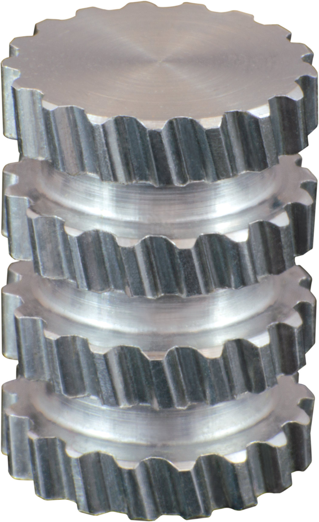 Series 65 Blind End Molded-In Inserts are designed for maximum pull-out and torque performance, and are often the Insert of choice for thermosets and engineered plastics with a high percentage of filler. The minor thread diameter tolerance is controlled to ensure positive positioning and perpendicularity of the Insert on the core pin during the molding process. The Series 65 is the same body style as the Series 63 Through-Hole Insert, but in a blind ended version. Series 65 Inserts are made from lightweight, lead-free 2024 aluminum, and are available in inch threads ranging from 8-32 to 5/16-18.