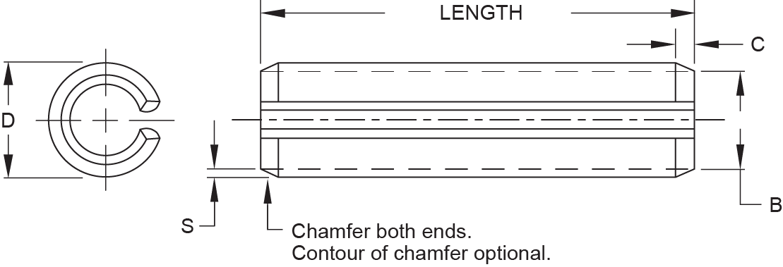 SPIROL’s Standard Inch Slotted Pins meet or exceed ASME B18.8.2 specifications and are available in high carbon steel, nickel (austenitic) stainless steel and chrome (martensitic) stainless steel in diameters ranging from .062” (1/16”) to .500” (1/2”).