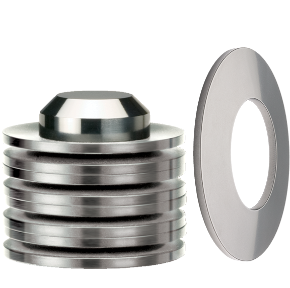 SPIROL offers a line of austenitic stainless steel Disc Springs in diameters ranging from Ø8mm to Ø71mm. Austenitic stainless steel is typically used for static and low cycle applications that require a heightened level of corrosion resistance. It withstands fresh water and atmospheric marine conditions very well, and is suitable for many other industrial conditions including acidic environments. This material will continue to work harden with use so cycle life is limited, but creep resistance is good.